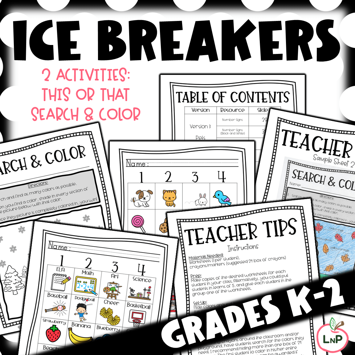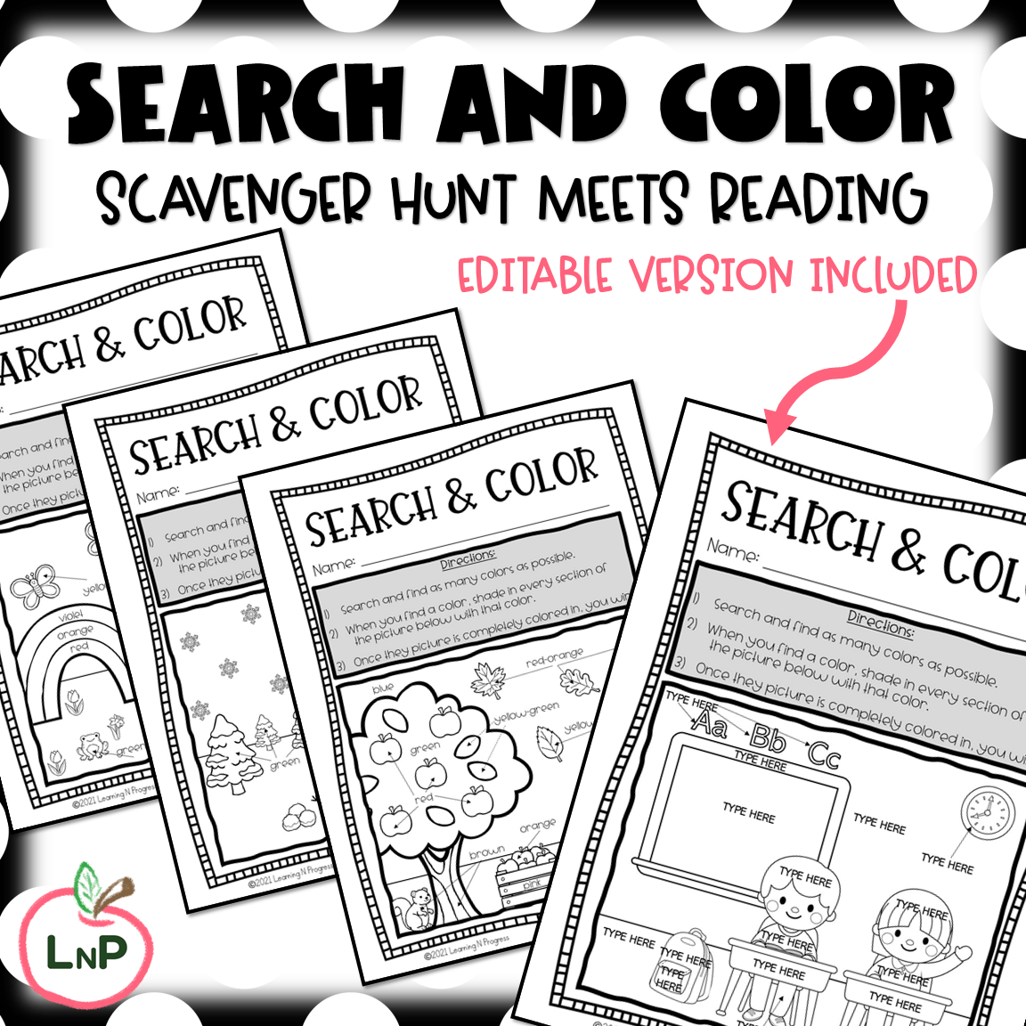 - 5 versions of Search and Color (back to school and seasonal versions)