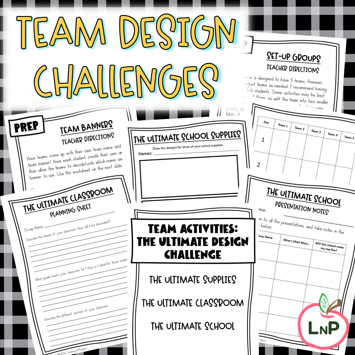 - 3 team design challenges: The Ultimate Supplies, The Ultimate Classroom, and The Ultimate School (includes planning sheets, voting sheets, and notes pages)